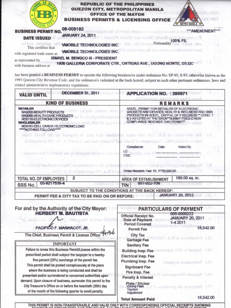 Before you can start operating your business in the Philippines you need to secure a Mayors Permit or Business Permit from the Local Government Unit LGU where your company office is located. VILLANUEVA City Treasurer Annex Building Quezon City Hall Compound 988-4242 loc. Tax payments and business registrations can easily.