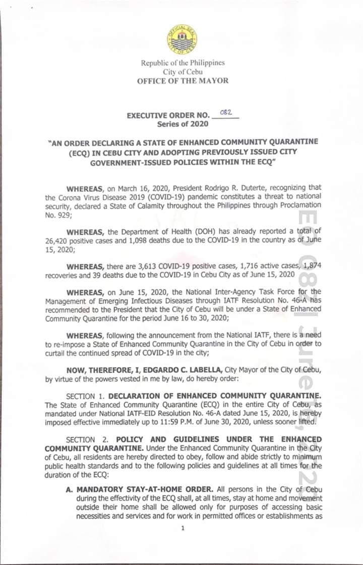 Cdn Digital On Twitter Look Cebu City Mayor Edgardo Labella Signs Executive Order No 82 Which Provides The Guidelines To Be Followed While The City Is Under Enhanced Community Quarantine Delta