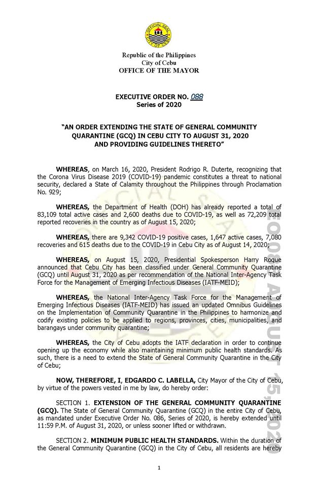 Sunstar Cebu On Twitter Cebu City Mayor Edgardo Labella Released An Executive Order Placing Cebu City Under General Community Quarantine Gcq Until 11 59 P M Of August 15 2020 Via Jjl 1 4 Https T Co Sdjb3gjh3u